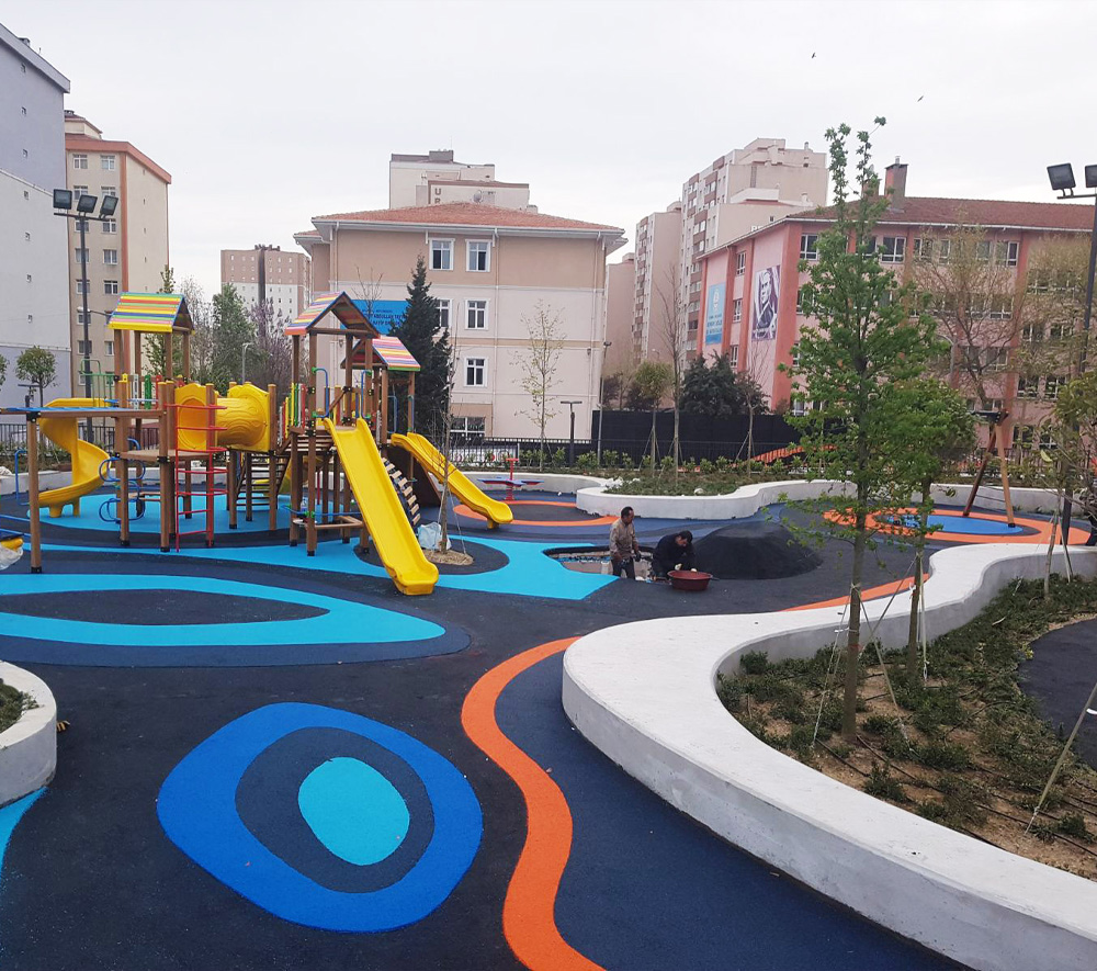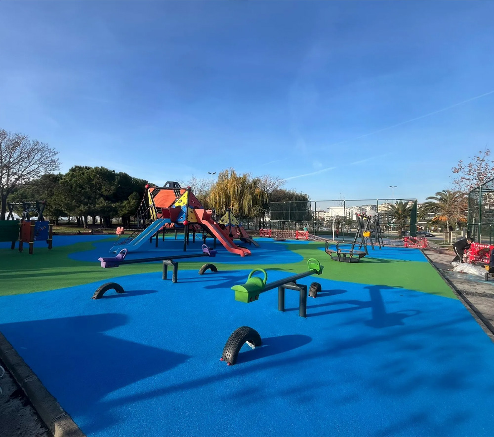 EPDM dökme kauçuk zemin kaplama, esnek yapısı, darbe emici özelliği ve dış mekân dayanımı ile güvenli zemin çözümleri sunan modern bir sistemdir. EPDM (Ethylene Propylene Diene Monomer) esaslı bu sistem, kauçuk granüllerin özel bağlayıcılar ile yerinde dökülerek uygulanmasıyla oluşturulur. Derzsiz ve esnek yapısı sayesinde zeminde bütünlük sağlar. Özellikle çocuk oyun alanları, yürüyüş yolları, spor sahaları, okul bahçeleri, parklar ve açık alanlar için ideal bir çözümdür.
